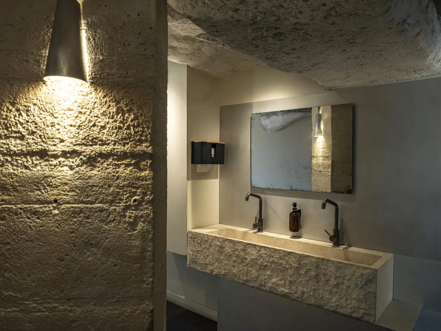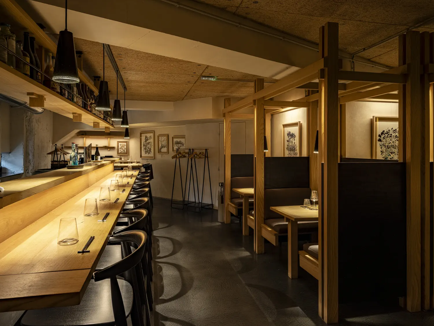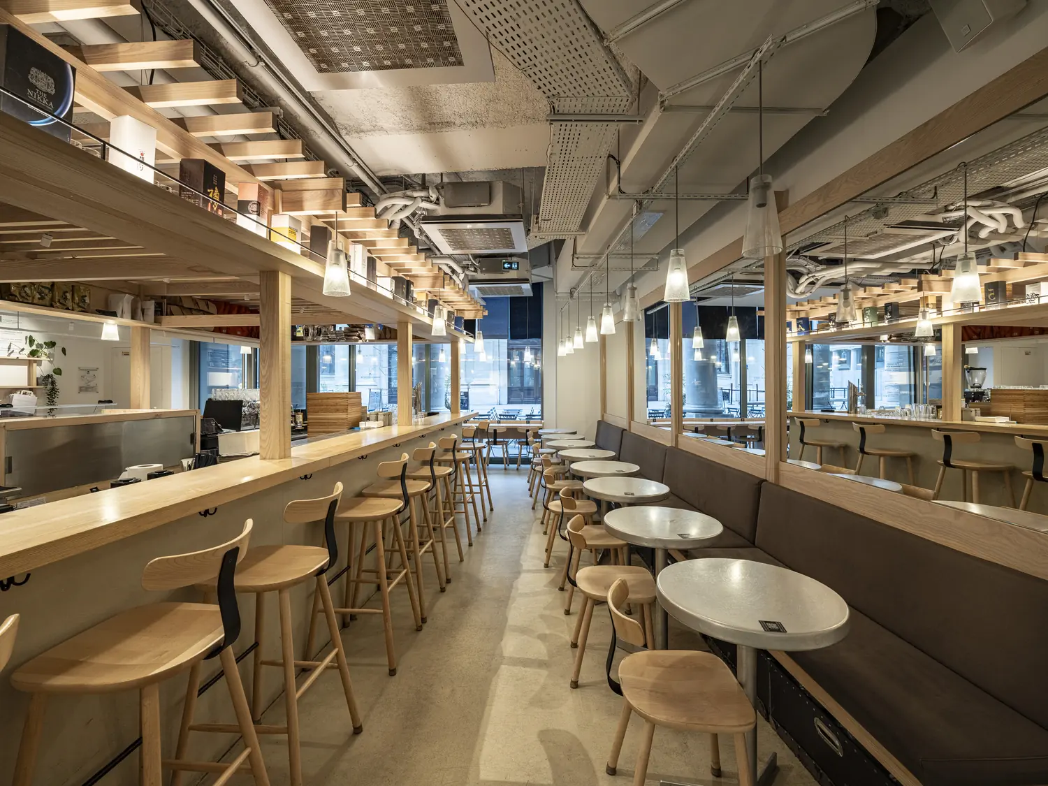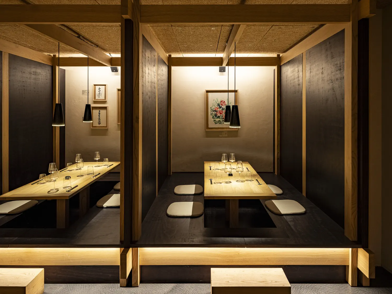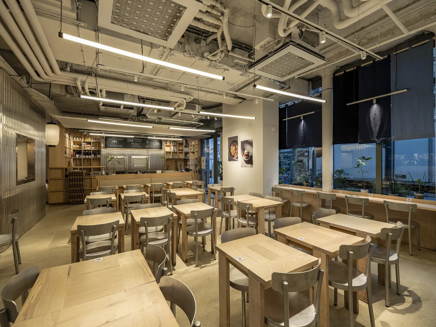 Réparti sur 2 étages, ce concept store propose des zones de restauration presque comme un foodcourt mais également une grande épicerie boutique, le tout dédié à la gastronomie japonaise. Le lieu colle également dans son architecture aux codes du design japonais contemporain avec des matériaux bruts et raffinés : plafonds à la technique apparente, pierres structurelles apparentes, enduits muraux en terre crue, agencements et meubles en bois clair et aluminium, miroir, sol en béton ciré, espaces de restauration initmistes tout en bois avec lumière tamisée... Un chantier de grande ampleur en plein coeur de Paris avec tous les corps d'état, du plus technique jusqu'aux menuisiers pour l'agencement.