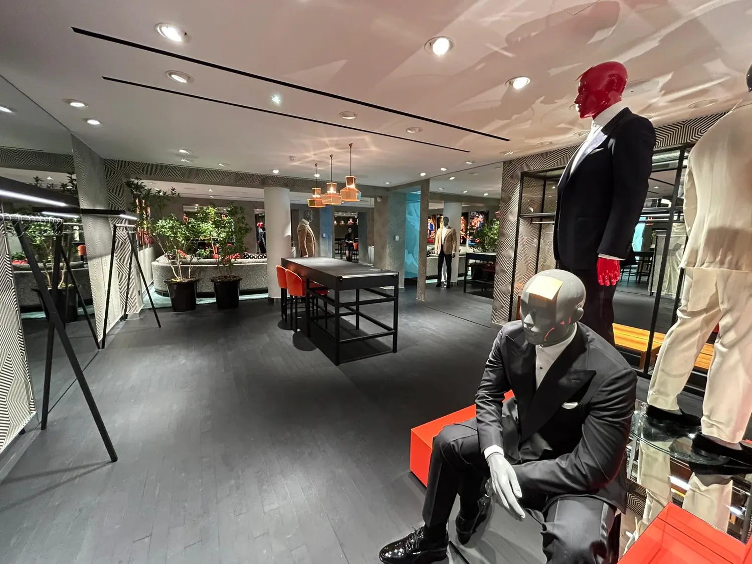 Cette immense boutique de la prestigieuse rue de la Paix a été transformée petit à petit tout le long de travaux réalisés en plusieurs phases. La contrainte principale de ce chantier a été de travailler en horaires décalés dans des zones très précises pour que la boutique reste ouverte le temps des travaux. A chaque phase, et chaque soir, à la fermeture de la boutique, les zones concernées étaient débarassées des produits et mobiliers, isolées à l'aide de panneaux étanches habillés aux couleurs de la marque pour permettre à nos partenaires d'intervenir sur les modifications techniques et remplacement de revêtements. Le même principe a été adopté au sous-sol pour refaire les locaux du personnel ou pour modifier certaines zones pour les rendre accessibles au public.