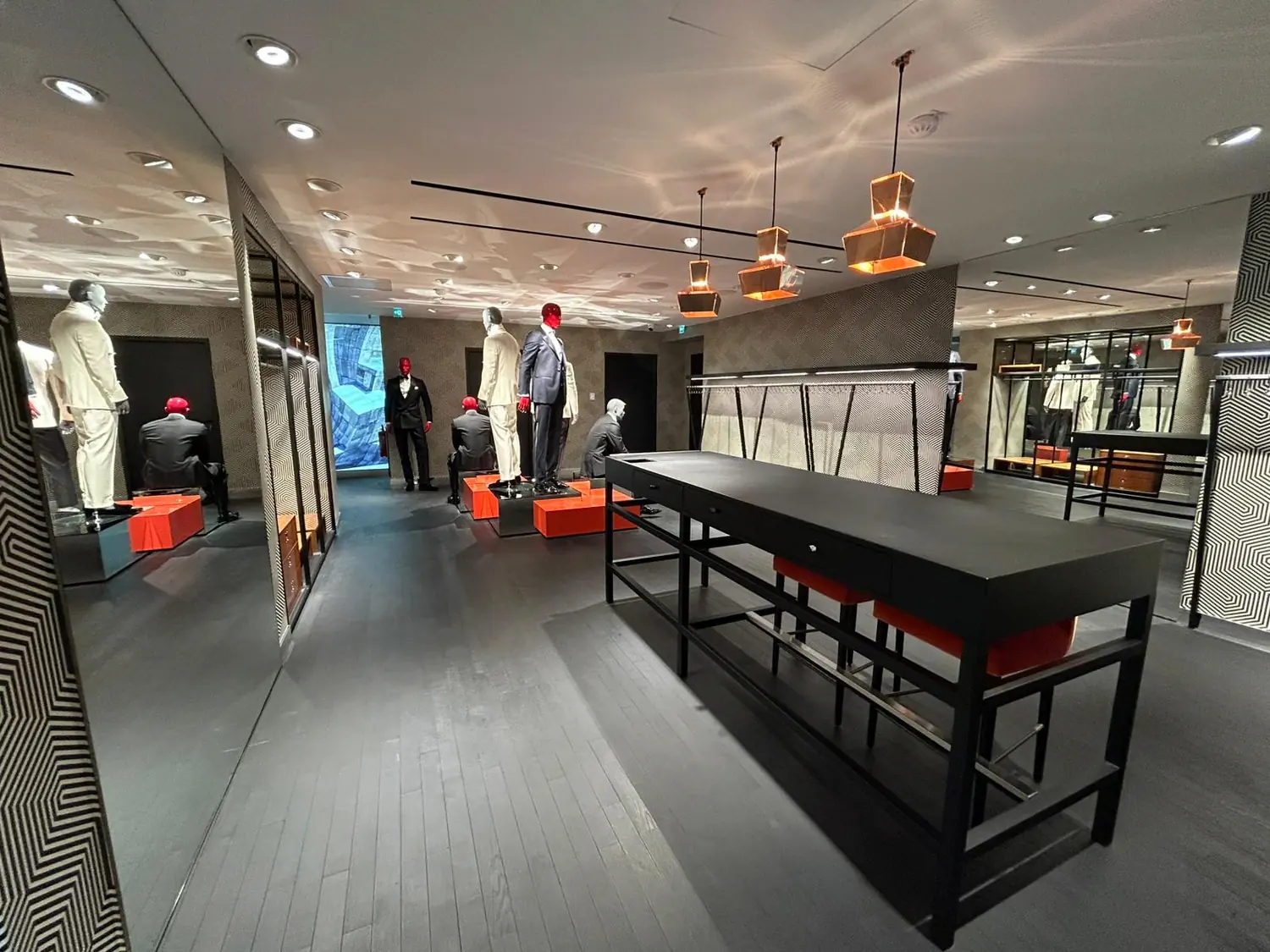 Cette immense boutique de la prestigieuse rue de la Paix a été transformée petit à petit tout le long de travaux réalisés en plusieurs phases. La contrainte principale de ce chantier a été de travailler en horaires décalés dans des zones très précises pour que la boutique reste ouverte le temps des travaux. A chaque phase, et chaque soir, à la fermeture de la boutique, les zones concernées étaient débarassées des produits et mobiliers, isolées à l'aide de panneaux étanches habillés aux couleurs de la marque pour permettre à nos partenaires d'intervenir sur les modifications techniques et remplacement de revêtements. Le même principe a été adopté au sous-sol pour refaire les locaux du personnel ou pour modifier certaines zones pour les rendre accessibles au public.
